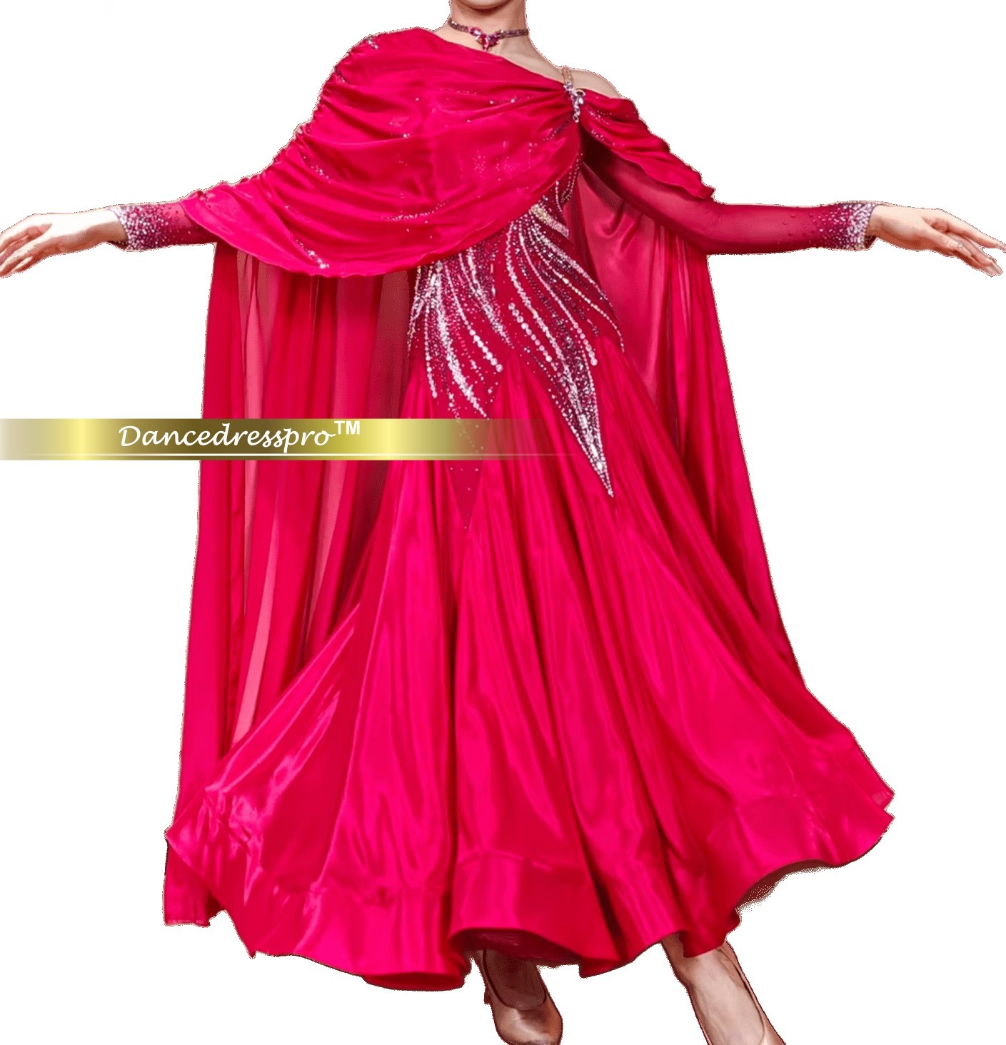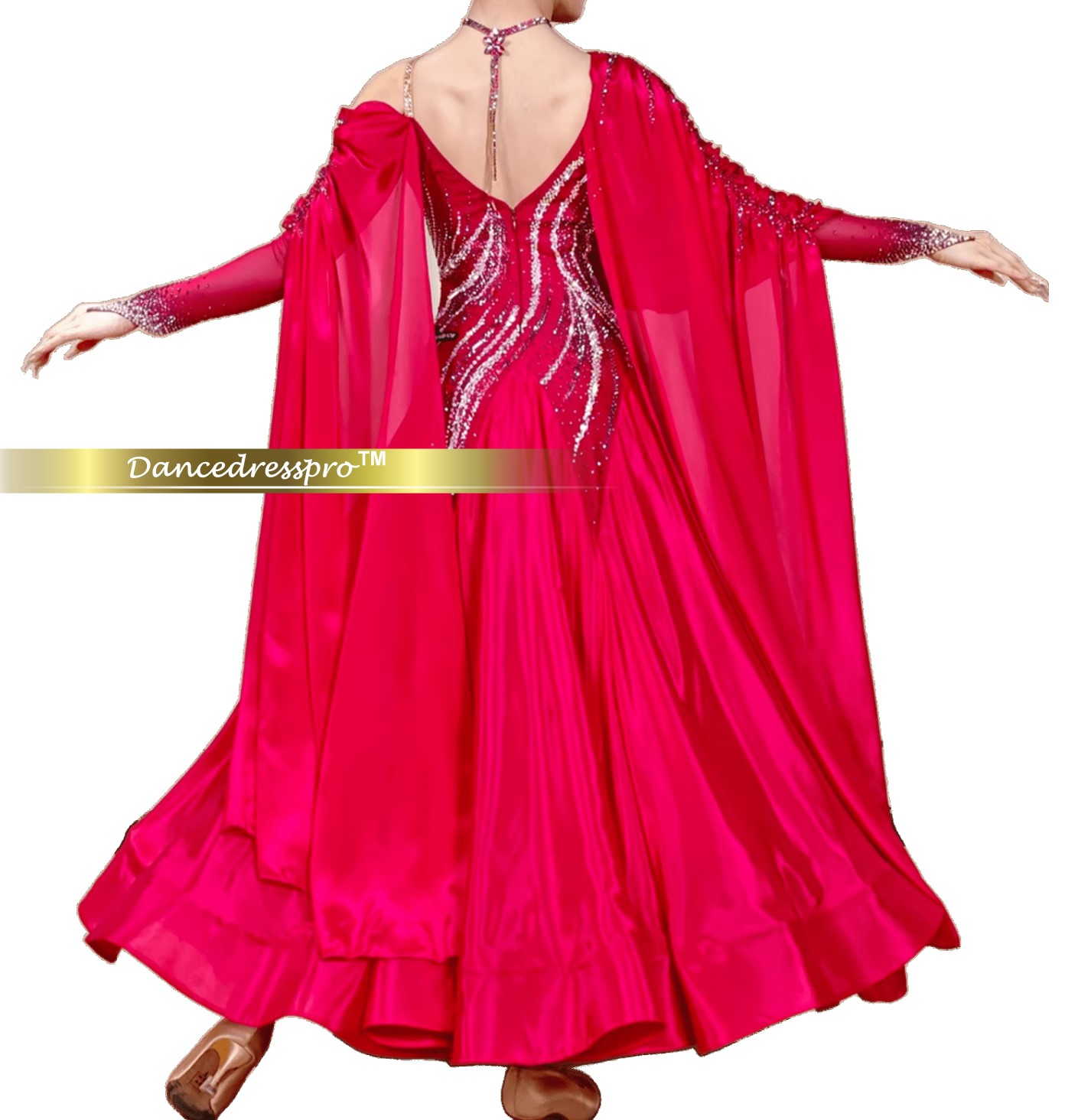Since all dance gowns are hand-made, and the size of each customer is different, the final appearance might vary slightly from the display images. Our designers will determine during production so as to get the best effect.