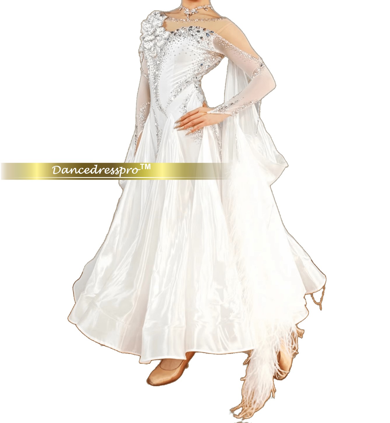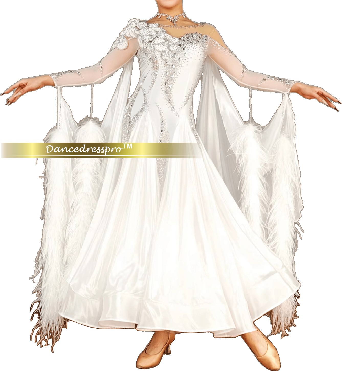 Since all dance gowns are hand-made, and the size of each customer is different, the final appearance might vary slightly from the display images.  Our designers will determine during production so as to get the best effect.