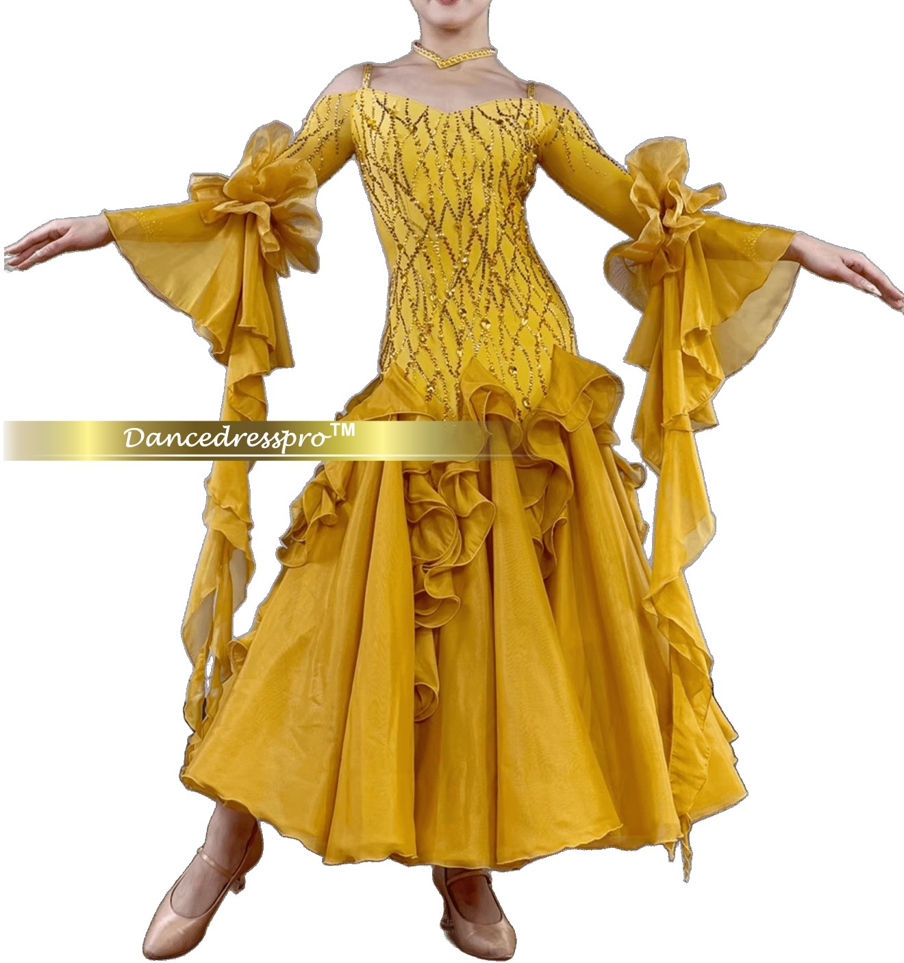 Since all dance gowns are hand-made, and the size of each customer is different, the final appearance might vary slightly from the display images. Our designers will determine during production so as to get the best effect.