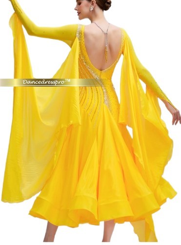 Since all dance gowns are hand-made, and the size of each customer is different, the final appearance might vary slightly from the display images. Our designers will determine during production so as to get the best effect.