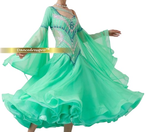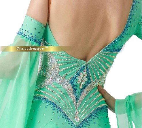 Since all dance gowns are hand-made, and the size of each customer is different, the final appearance might vary slightly from the display images. Our designers will determine during production so as to get the best effect.